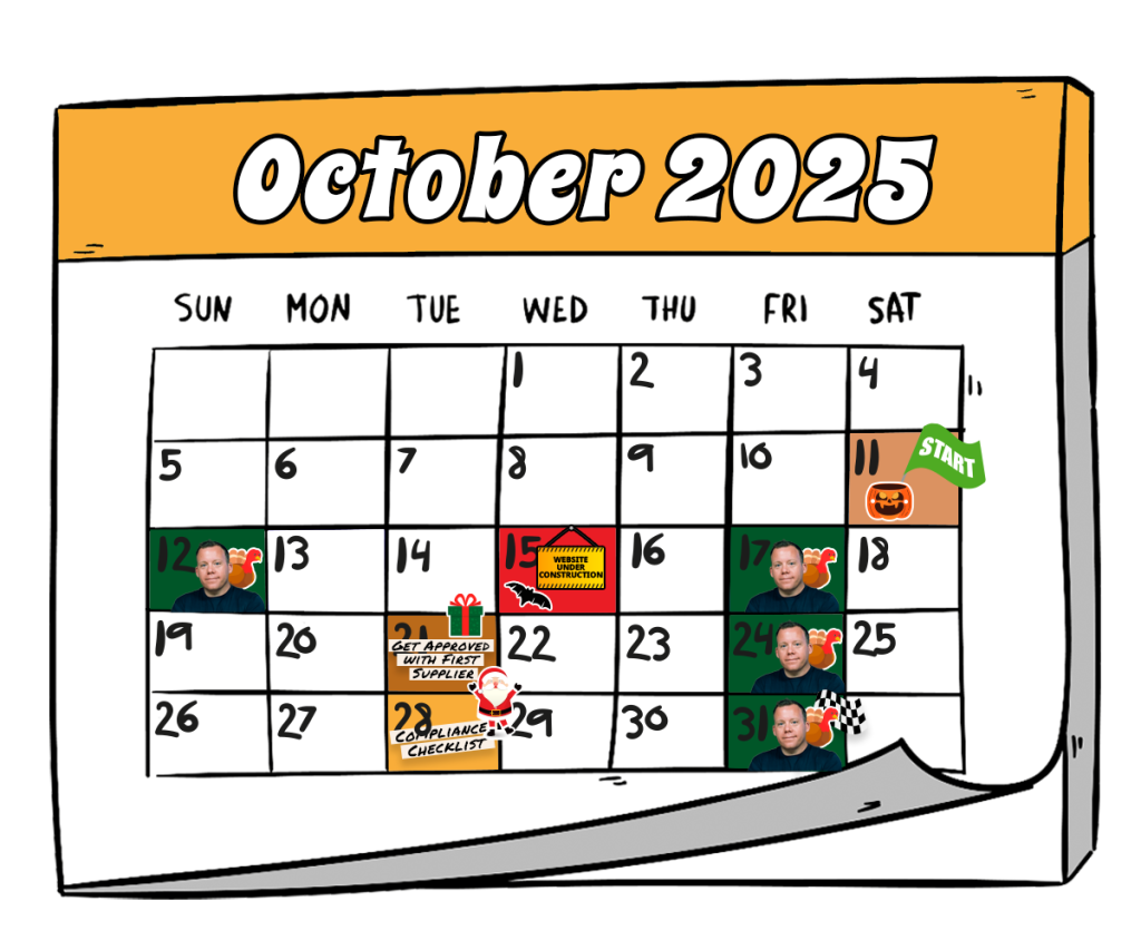 We kick off inside our private Discord on Oct 11, 2025. Live calls with Anton are on Oct 12, Oct 17, Oct 24, and Oct 31. His team begins building your site on Oct 15, you’ll get your first supplier approved by Oct 21, and we run the Compliance Checklist on Oct 28 so you’re ready to launch by Halloween.